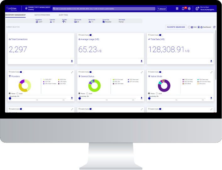With its familiar and intuitive interface, LinQView gives you full visibility over your entire SIM inventory. Custom dashboards provide an at-a-glance view of your most critical network statistics. LinQView makes it easy to manage everything on your network, from every underlying operator, all at once.